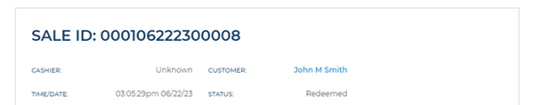 The customer, identified and recorded, for the sale when it occurred. It is formatted as a link, which when selected, closes the Sale ID panel and opens the Customer View panel for the corresponding customer.