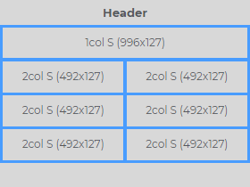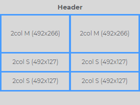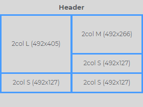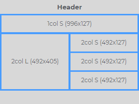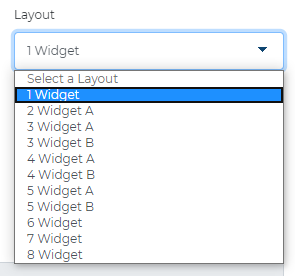 Patheon provides 12 (twelve) layout options. The layout thumbnails display the image dimensions for each widget.