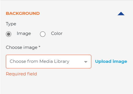 The Choose image* setting provides the ability to select a background image from the Media Library, or upload a new image.