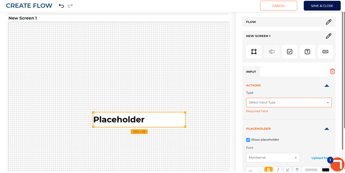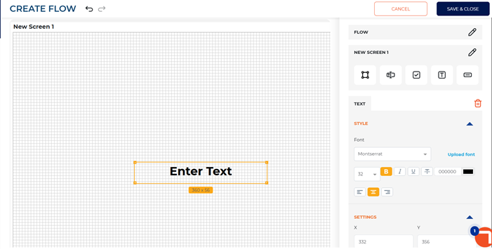 The New Screen 1 configuration settings opens after selecting the edit function below Start.