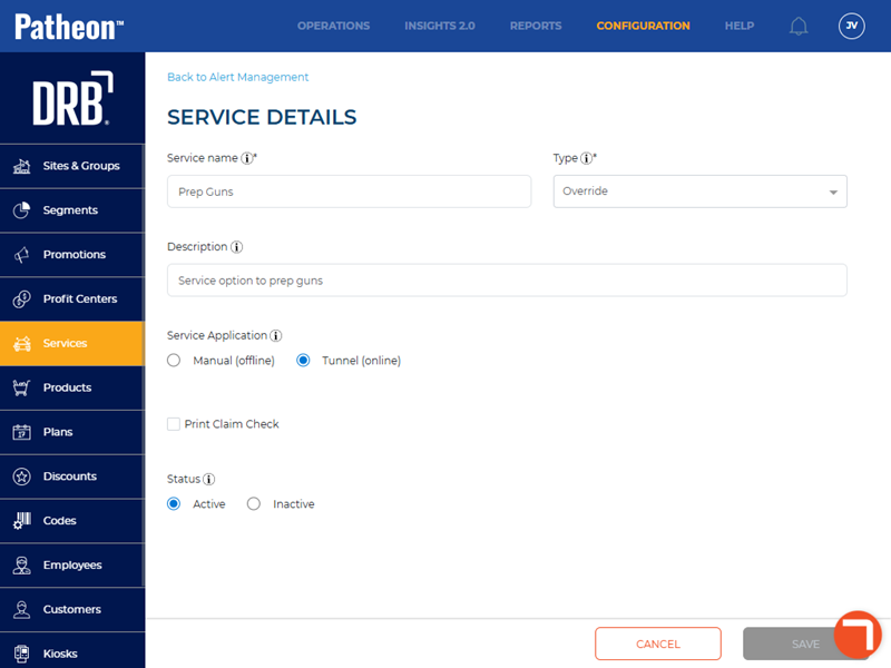 - Inactive: Indicates the site doesn't want to use this service. Can only be set if the service isn't assigned to any products (edit each product and remove it)