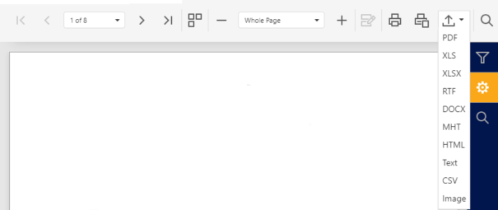 Download a copy of the report in a webpage archive .MHT file. The export file names are unspaced report titles and the export file type. The file name does not incorporate a date or time stamp.