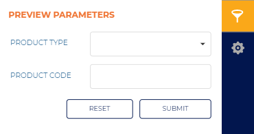 The Preview Parameters section provides the ability to specify the prepaid product type and specific code for a generated Prepaid Product Balance Report.