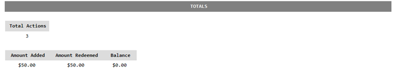 The TOTALS section provides a summary of all activity involving the prepaid code for which the report was generated.