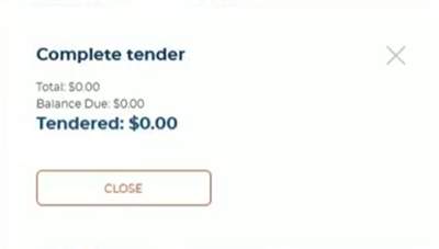 - Select . The entire available balance is transferred from the first gift card to the second gift card and the Complete tender dialog opens.