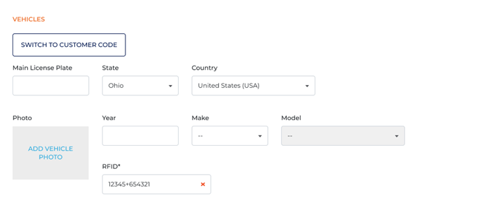 - Select . The RFID tag number is assigned to the customer's vehicle and their plan.