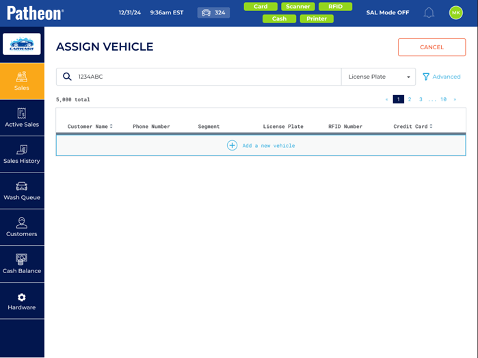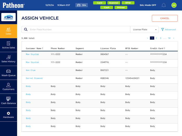 - Use the search bar to search for the customer by license plate, name, phone, RFID number, or credit card.