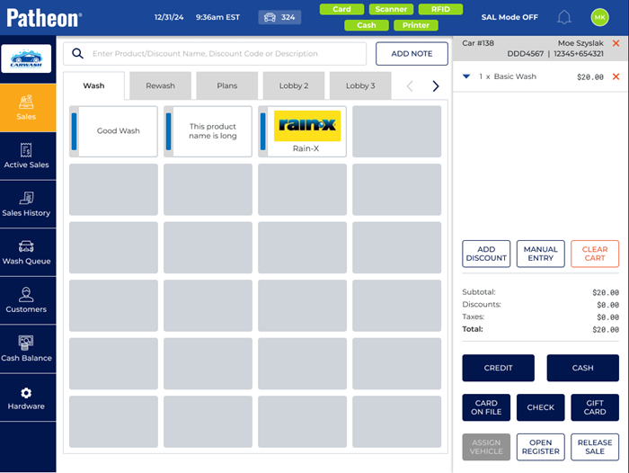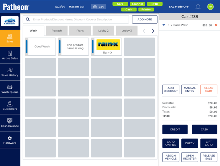 - Select the wash to add to the sale. The wash is added to the cart.