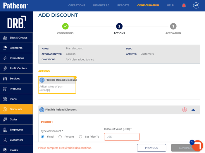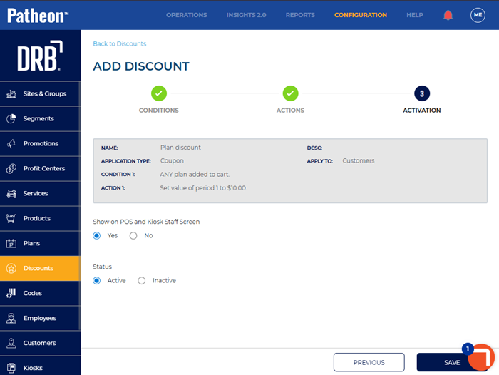 - Select . The add discount (3 Activation) panel opens.