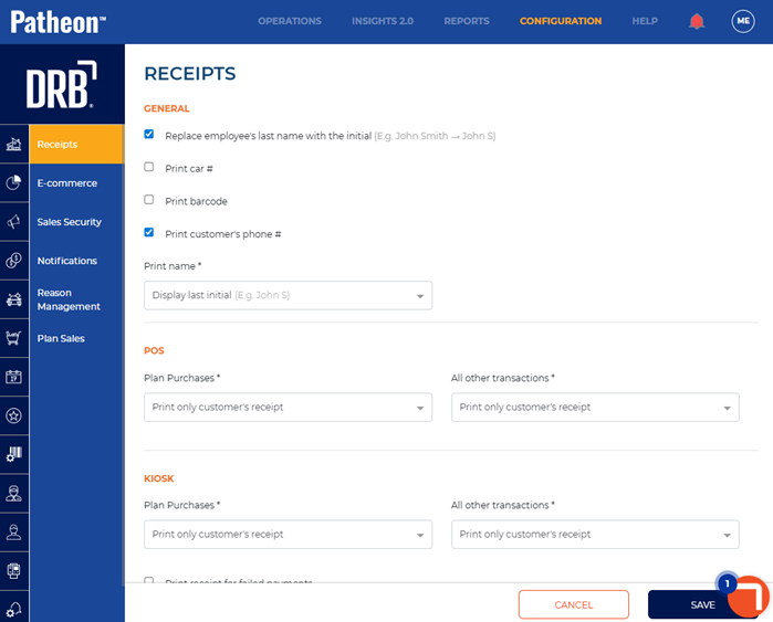 Use these steps to configure receipts to print a customer's primary phone number, if available, on receipts.