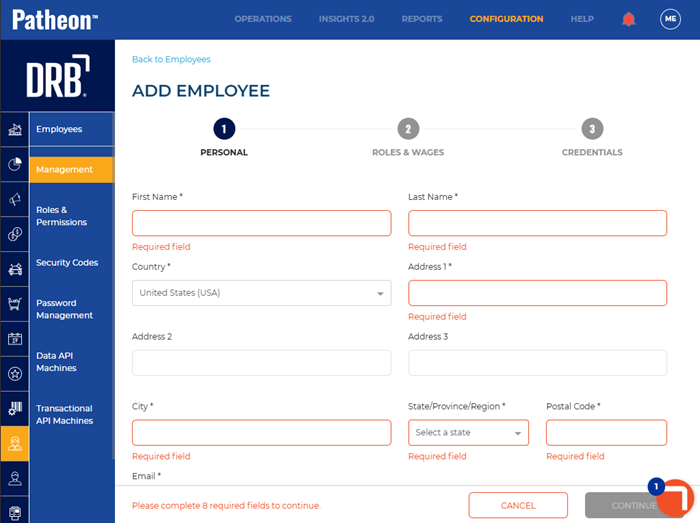 Use these steps to set up an employee in Patheon.