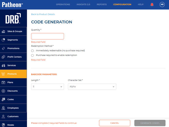 - Select the product name for which to generate barcodes. The product details panel opens.
